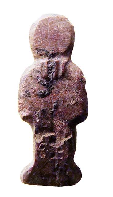 Amuleto in pietra lavorato a tutto tondo, con presa superiore priva del foro di sospensione, che raffigura il nodo Tit, simbolo della dea Iside. Raffigura un panno piegato e annodato in maniera particolare; tale amuleto, di colore generalmente rosso, doveva proteggere i defunti e quindi veniva messo al collo delle mummie il giorno dei funerali.