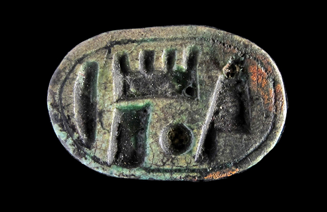 Scarabeo in steatite con il nome di Amon-Ra, dall'Egitto