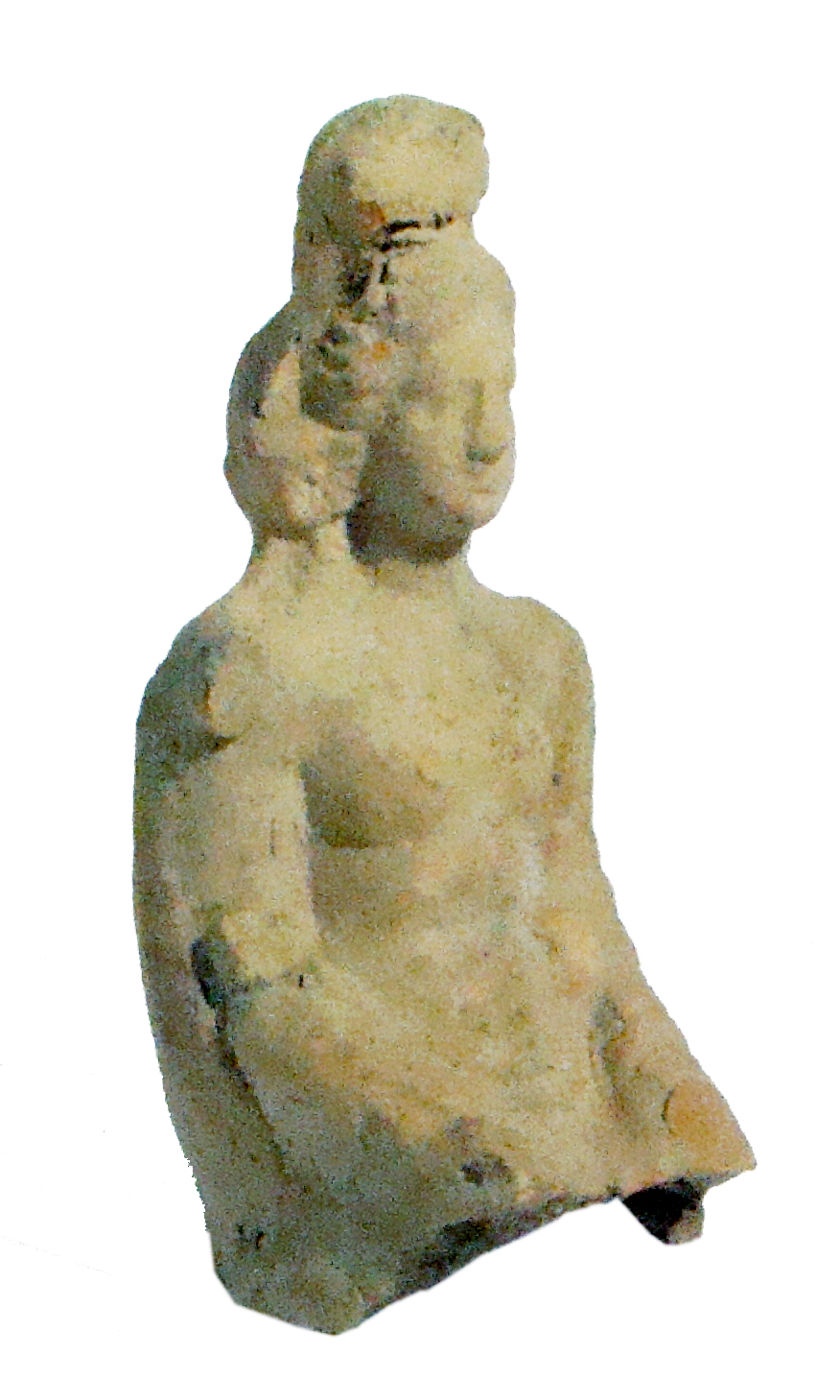 Statuetta di donna seduta spezzata in terracotta