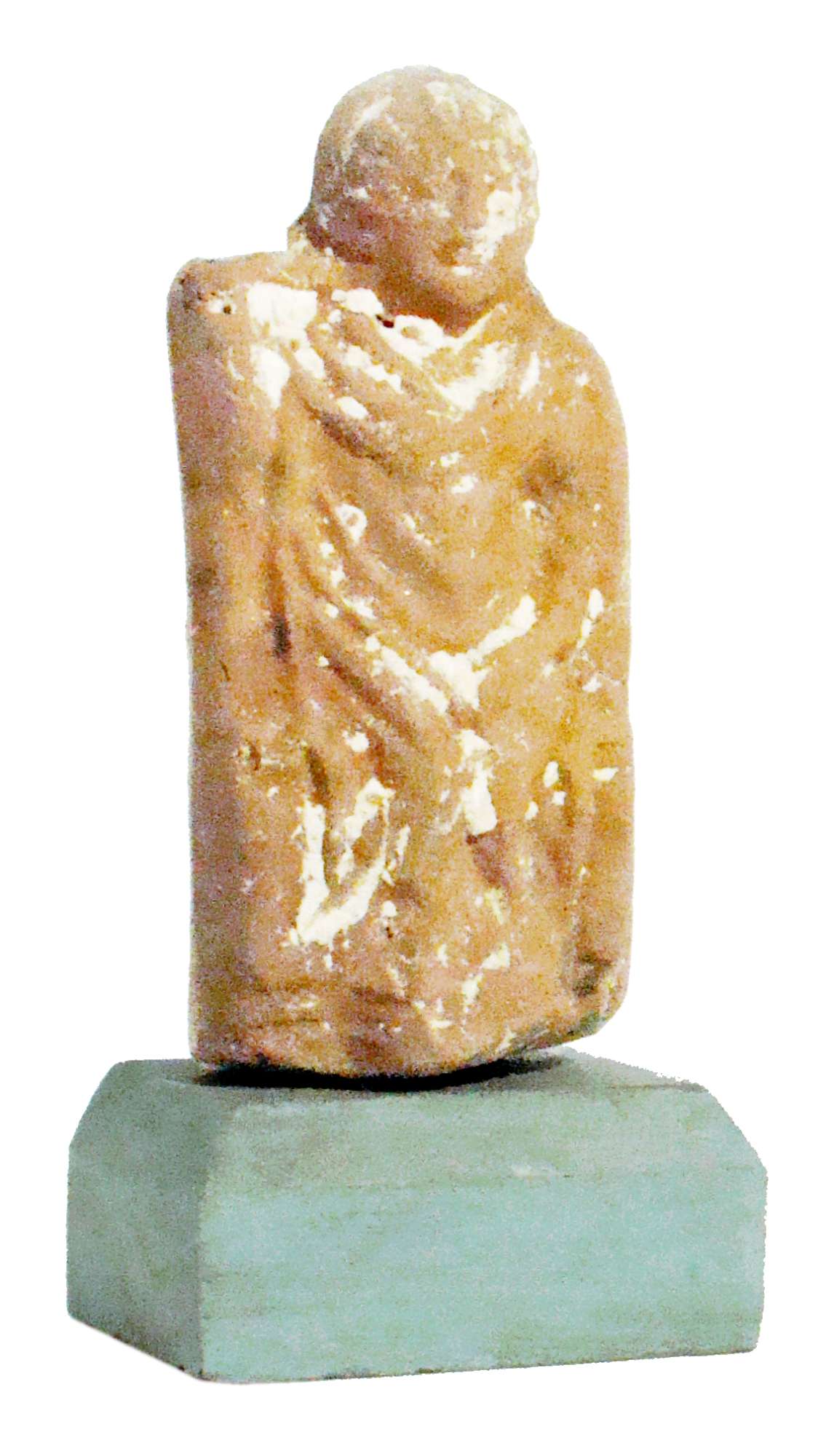 Figura in terracotta, realizzata a matrice. Su basetta lignea moderna è apposta un'etichetta con il numero "661". Sul retro scritta in rosso "661" e "5143". Applicata un'etichetta ovale con una dicitura in corsivo non leggibile. Figurina femminile assisa su trono con alto schienale. Indossa una veste pieghettata, le braccia sono appoggiate sulle ginocchia. Sul retro, non lavorato è appena accennata la capigliatura e la seduta del trono. Capelli a ciocche parallele.