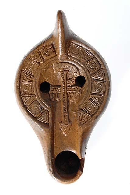 Lucerna tardoantica con croce monogrammatica