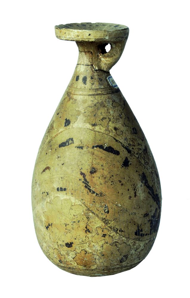 Grande alabastron corinzio dalle figure ormai evanidi: sirena ad ali spiegate tra rosette.