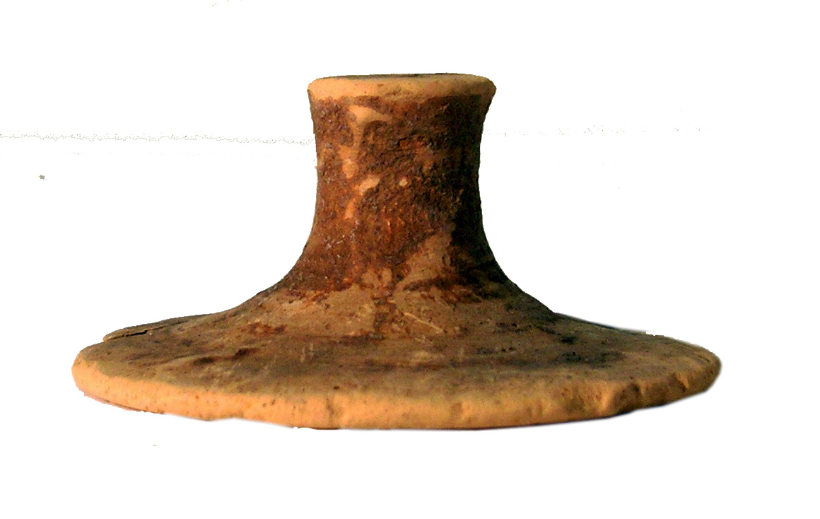 coperchio con presa a bottone e tracce di vernice rossa