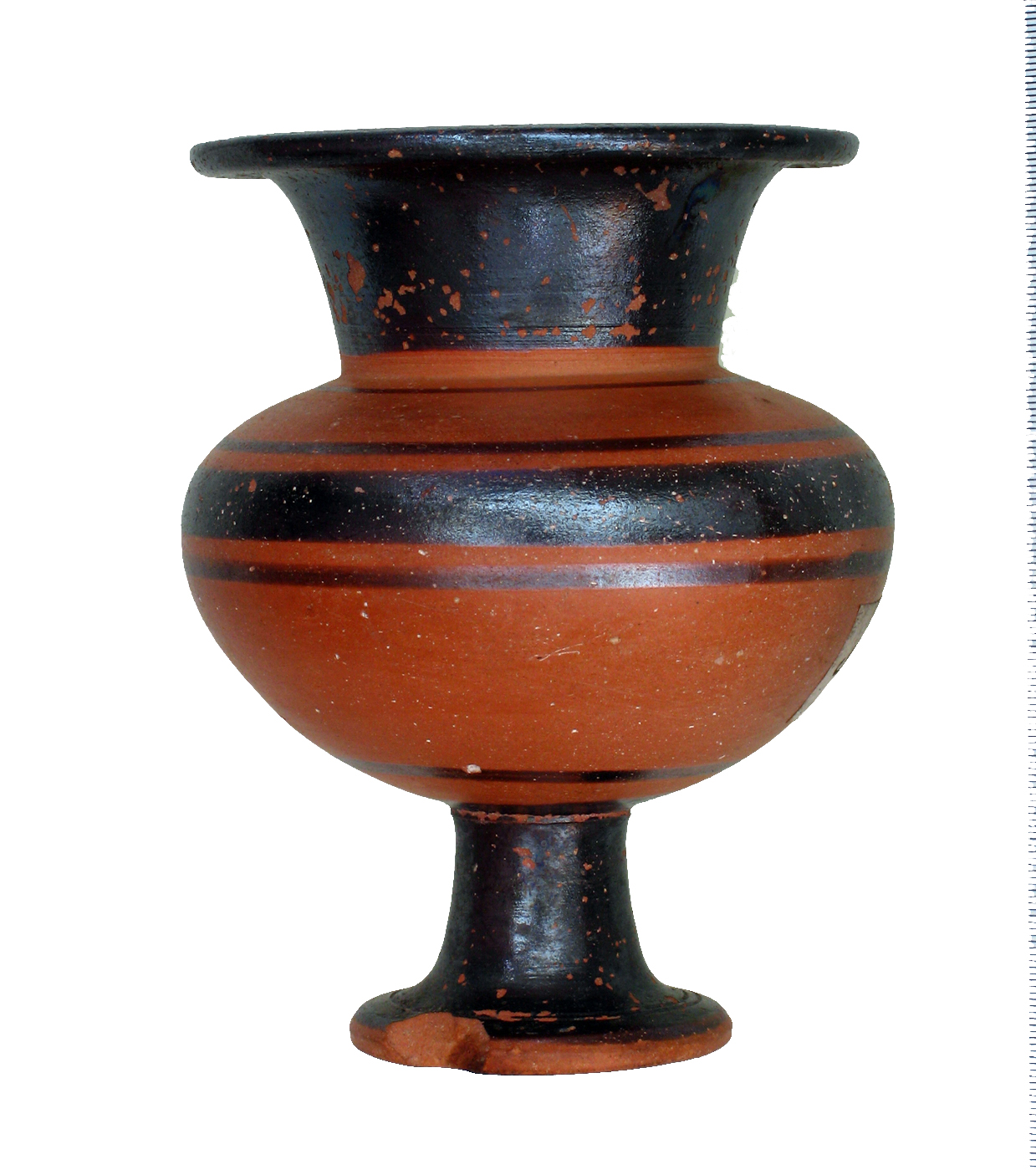 Lebete miniaturistico a vernice nera a fasce nere sulla superficie del corpo risparmiato.