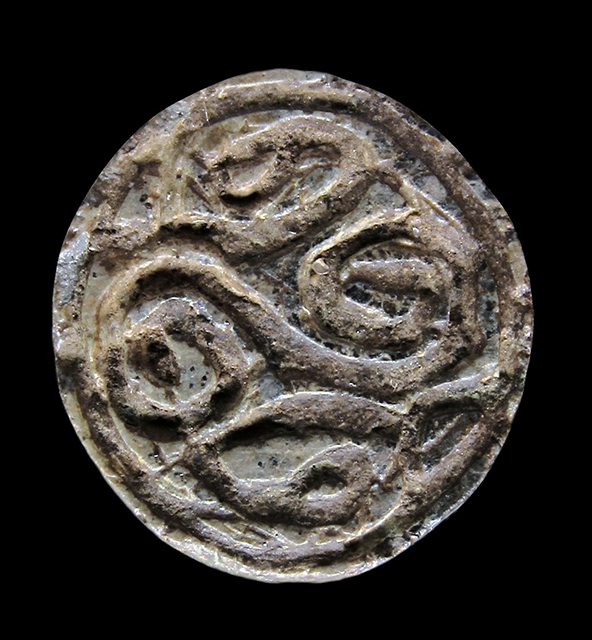 Scaraboide in steatite con decorazione a spirale, dall'Egitto