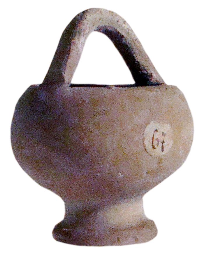 Piccola situla con corpo emisferico e orlo indistinto. Piede a tromba e ansa sormontante impostata orizzontalmente su due lati dell’orlo, in funzione di manico. Tracce di ingubbiatura bianca e di colore giallo.