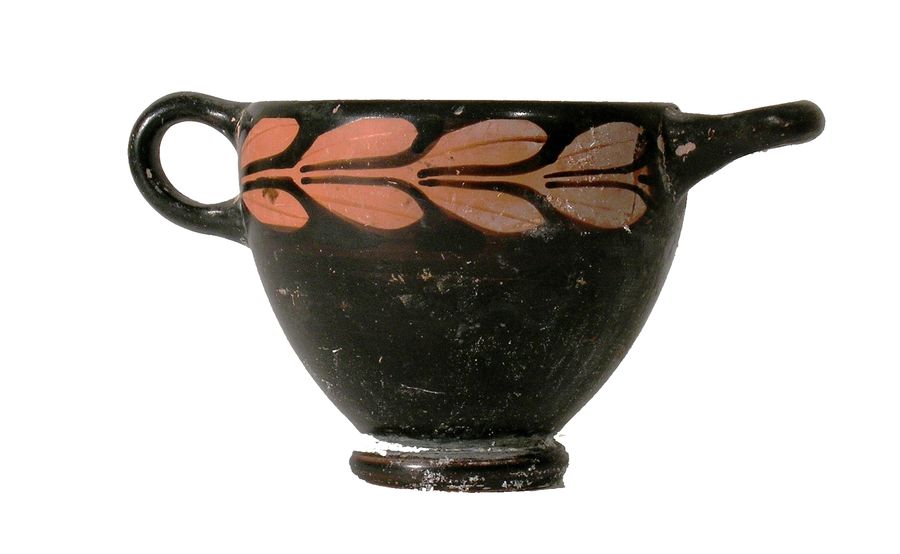 Skyphos attico a figure rosse. Decorato con grande serto d'ulivo