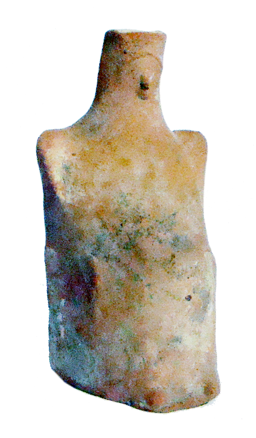 Figurina in terracotta, realizzata a matrice. Cava. Foro quadrangolare su retro. Apposta un'etichetta con dicitura "GRECIA 28 dec 1882". Leggibili le cifre in rosso "662" e "5116". In matita, all'interno, è ripetuto il numero "5116". Figurina femminile, seduta su trono con alto schienale. Appena abbozzati piedi e mani che sembrano appoggiate sulle ginocchia. Porta un polos.