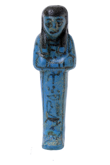 Usciabti di K... in faience del XIII-VIII secolo a.C., inv. 12021; Statuina funeraria mummiforme, Antico Egitto