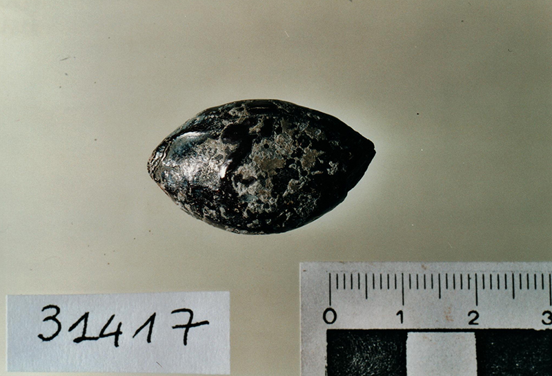 Ghianda anepigrafe, tipo Ic, forma ovoidale con patina scura.