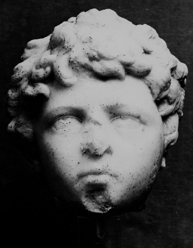 Buono; Spezzato all'attaccatura del collo; scheggiato il naso e il mento; varie abrasioni.