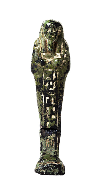 Il materiale e la tecnica con cui la statuina è stata prodotta non sono utilizzati nelle epoche faraoniche, mentre sono tipici delle imitazioni di ushabti prodotte tra XIX e XX secolo (in particolare la vernice usata e la rubricatura in bianco dei segni geroglifici). Inoltre, la presenza di iscrizioni (che pure hanno dei segni che non sono coerenti con il senso e il cui disegno ha delle caratteristiche insolite), così come la buona imitazione dello stile egiziano di Epoca Tarda (664-332 a.C.), suggerisce che si tratti di un falso erudito.