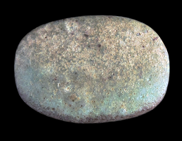 Scaraboide in faience con geroglifici incomprensibili, dall'Egitto