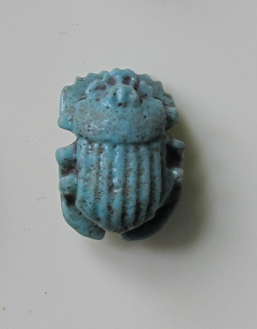 Scarabeo in faience, con raffigurazione animale, che presenta una minuziosa cura per i particolari naturalistici. Questo tipo di scarabei è tipico, anche se non esclusivo, della XXVI dinastia (672-525 a.C.).