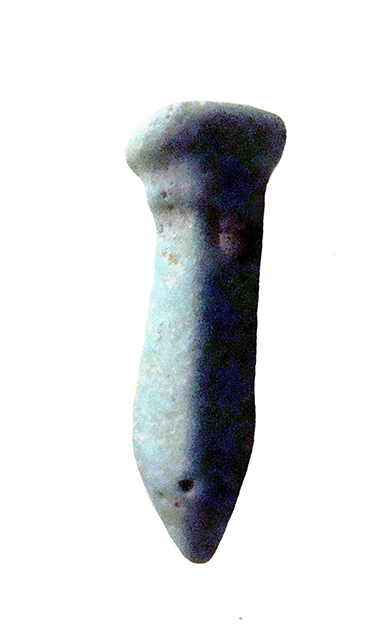 Amuleto in faience lavorato a tutto tondo e raffigurante un giovane stelo cilindrico di papiro con la base appuntita e con in cima la sua tipica infiorescenza a ombrello; al di sopra manca la consueta presa forata per la sospensione, ma nel corpo dell'amuleto è ricavato un foro passante. Normalmente, lo stelo di papiro così raffigurato è tenuto in mano come scettro dalle divinità femminili. Di colore verde o azzurro chiaro, allude alla gioventù e alla rinascita della vegetazione, rinascita che i defunti speravano di sperimentare nell'aldilà.
