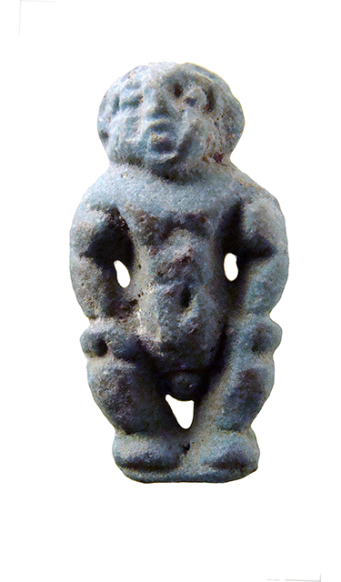 Amuleto raffigurante Pateco con presa forata dietro la schiena, dall'Egitto