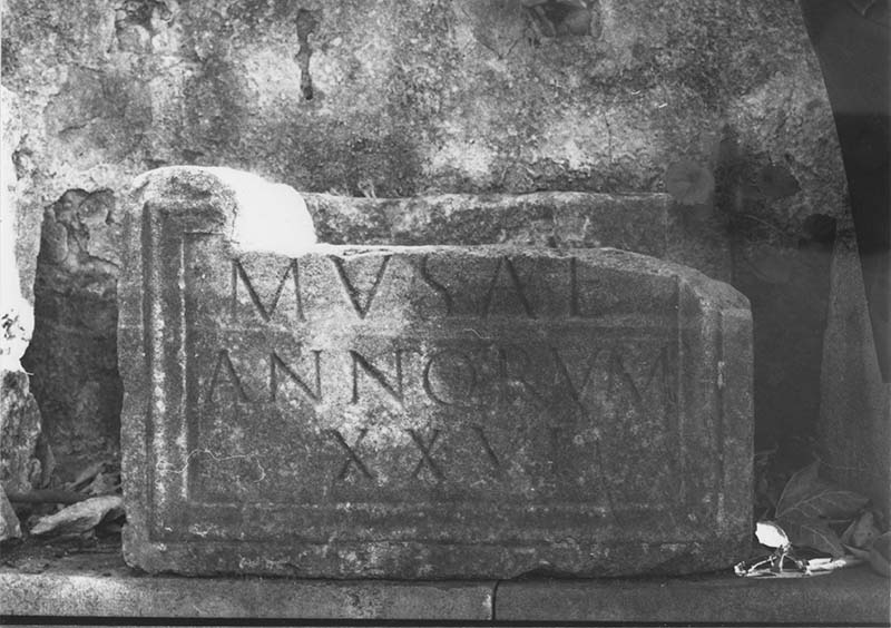 Urna rettangolare con fronte incorniciata e iscrizione a Musa, morta all'età di ventisei anni.