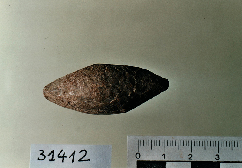 Ghianda anepigrafe, tipo IIa, con ossidazione giallastra.