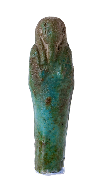 Statuina funeraria mummiforme, di cui mancano i piedi, che indossa la barba divina e una parrucca tripartita, la quale continua dietro direttamente con il pilastro dorsale. Le mani sono incrociate e affiancate: nella destra c'è una zappa e nella sinistra un piccone. Dalla spalla sinistra pende una sacca. L’iscrizione corre lungo una colonna sul pilastro dorsale.