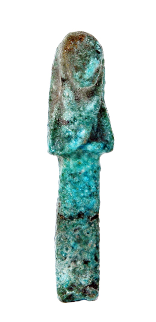 Statuina funeraria di dimensioni ridotte, per cui è possibile la funzione di amuleto. L'ushabti è mummiforme, con le braccia incrociate sul petto, la destra sulla sinistra. Le mani sono prive di attrezzi. La parrucca è tripartita, il retro è piatto e non è presente alcuna base sotto i piedi. Non sono presenti iscrizioni.