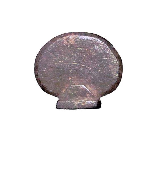 Amuleto in pietra lavorato a tutto tondo, privo di foro di sospensione. Raffigura il disco solare, poggiante su una piccola base dalla sommità arrotondata, che simboleggia una montagna. Dal momento che il sole rinasce ogni giorno all'orizzonte, tali amuleti assicuravano un'eterna rinascita a chi li portava.