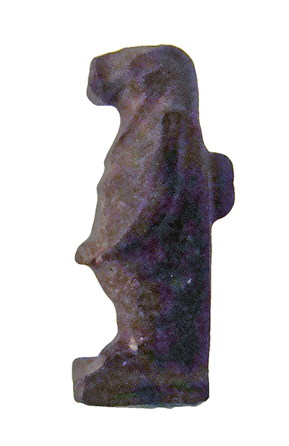 Amuleto in pietra raffigurante la divinità apotropaica Toeris, patrona delle partorienti e dei neonati. La dea è raffigurata in piedi, con il muso di coccodrillo, una lunga parrucca, il corpo da ippopotamo gravido, con le braccia distese lungo il corpo. I piedi poggiano su una base parallelepipeda, mentre il dorso con la coda da coccodrillo si fonde con il pilastro dorsale, sul quale vi è una presa non forata.