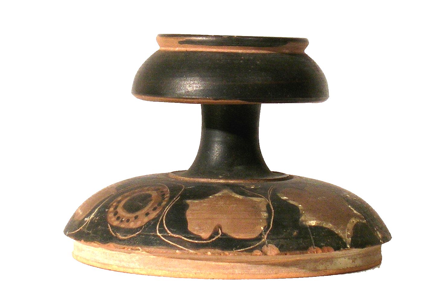 Coperchio della pisside 1785 con alta presa concava, a profilo ricurvo e decorazione a serto d'edera, risparmiate alcune linee sul pomello.