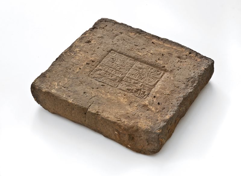 I mattoni in argilla sono ascrivibili a Gudea, re di Lagaš, della fine del III millennio a.C., e sono molto probabilmente riferibili all’Eninnu, il tempio di Ningirsu edificato da Gudea a Girsu (l’odierna Tello in Iraq). Su entrambi i mattoni è riportata copia della medesima iscrizione di fondazione che celebra i lavori di costruzione e ristrutturazione del tempio a opera del sovrano della città. Si tratta dell’impresa edilizia più nota e celebrata di Gudea che fu molto attivo come costruttore. Questa versione dell’iscrizione è la più diffusa: sono noti altri 33 esemplari su mattoni, oltre a numerose copie su altro supporto come coni d’argilla, perni di porta, tavolette di pietra e diorite, e blocchi di calcare. Sono attualmente noti 1173 esemplari dell’iscrizione.