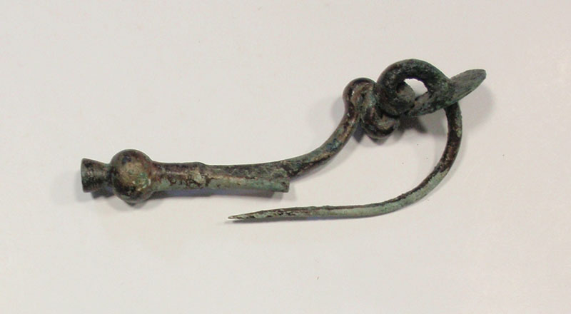 Fibula serpeggiante con occhiello e arco a fettuccia.