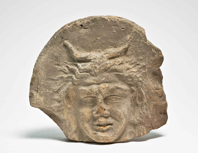 Argilla di color tra il beige chiaro e il grigio, in frattura argilla rosata. Proviene dalla stessa matrice dell'antefissa inv. 3783 (T.1404).