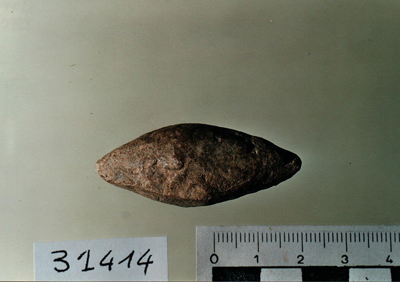 Ghianda anepigrafe, tipo IIa, con ossidazione giallastra.
