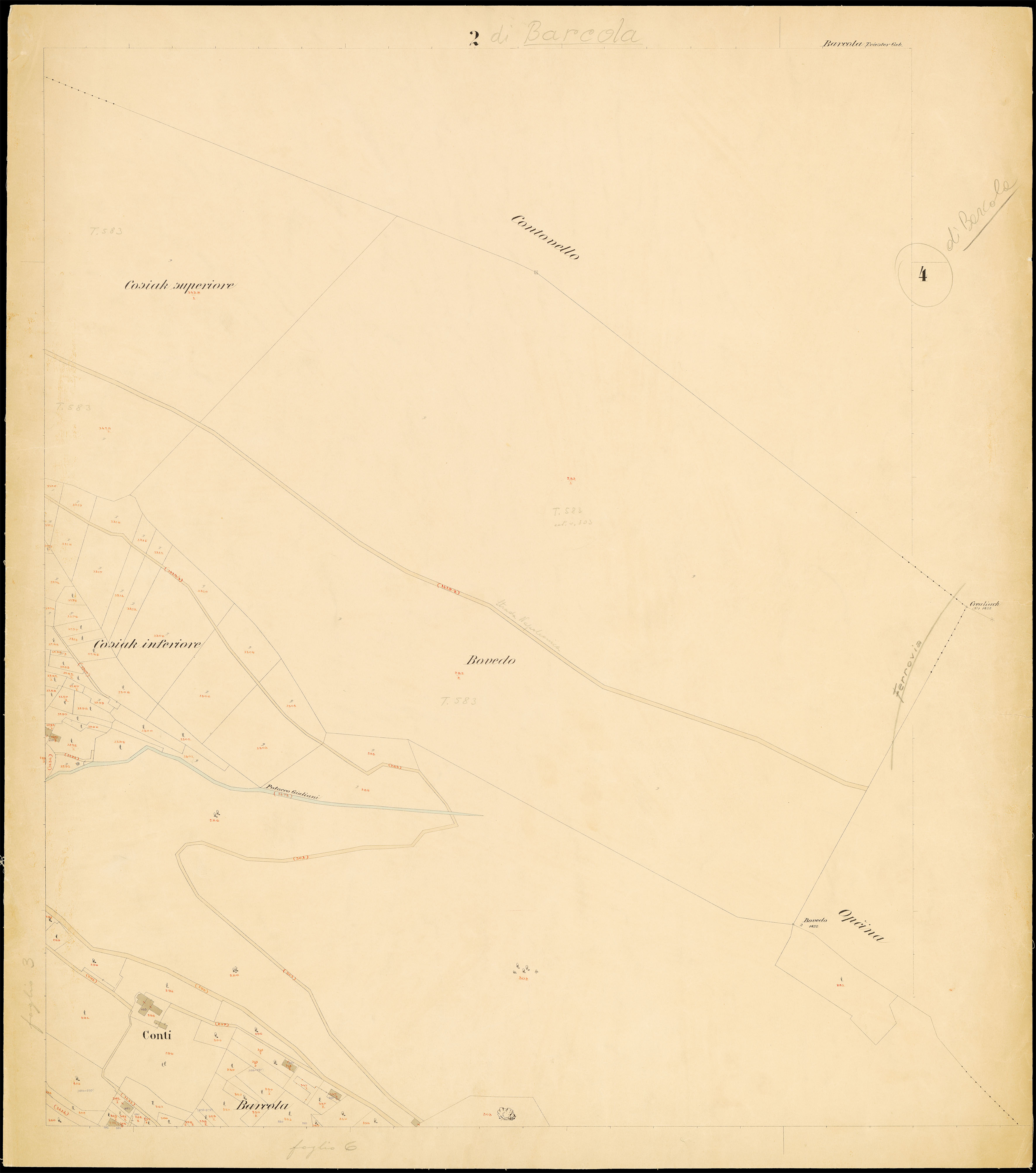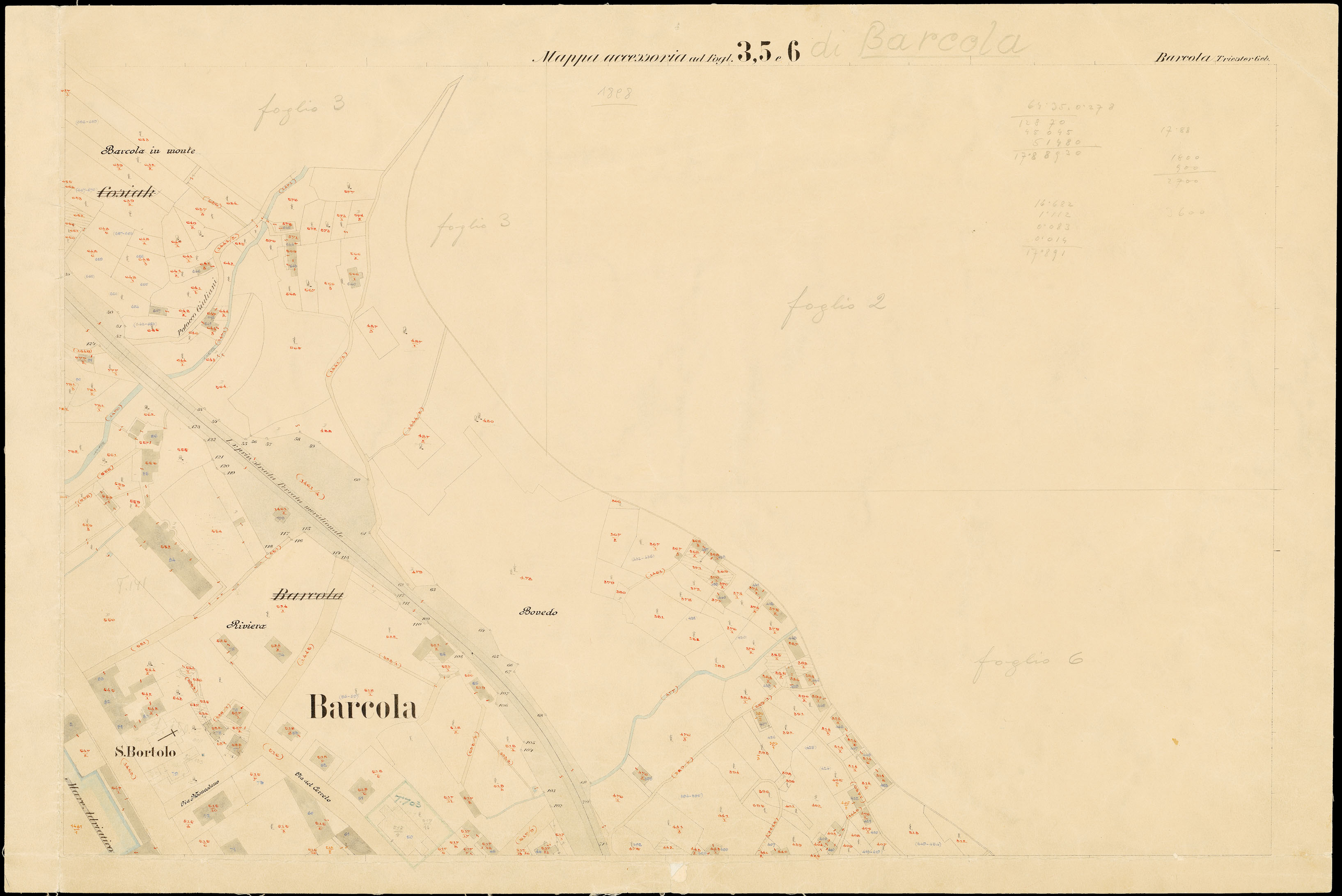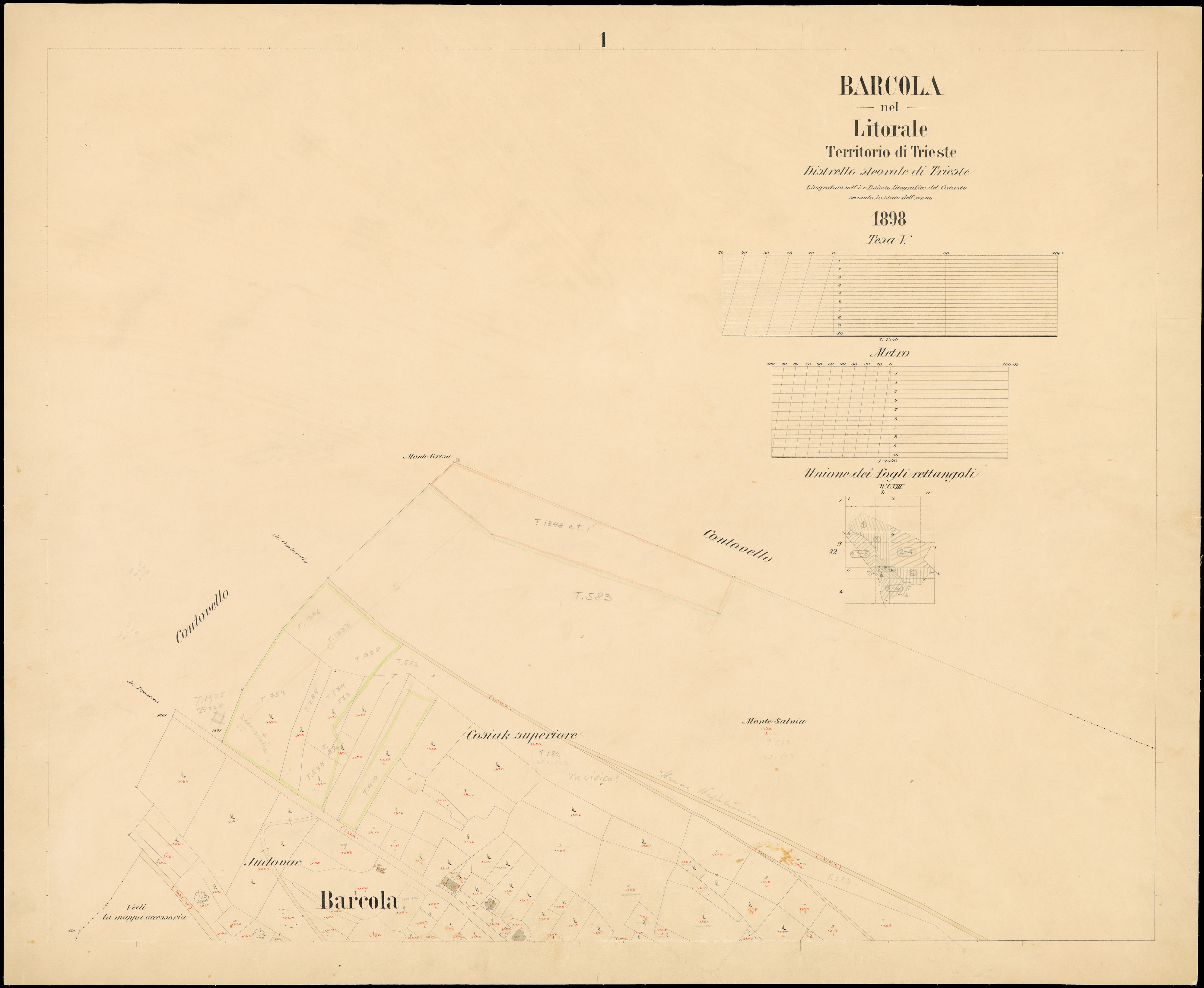 Toponimi presenti: Monte Salvia, Cosiak Superiore, Judovac, Strada d'Italia, Starz, Martellanz, Bovedo, Barcola, Cosiak Inferiore, Bovedo, Sternat. Riviera, Batteria Krecich, Molo delle monache, Salita di Contovello, Judovac, Pokunianac, Barcola in monte, Riviera, Pertot, Barcola, Porto, Potocco Starz, Potocco Giuliani, S. Bortolo, Matias