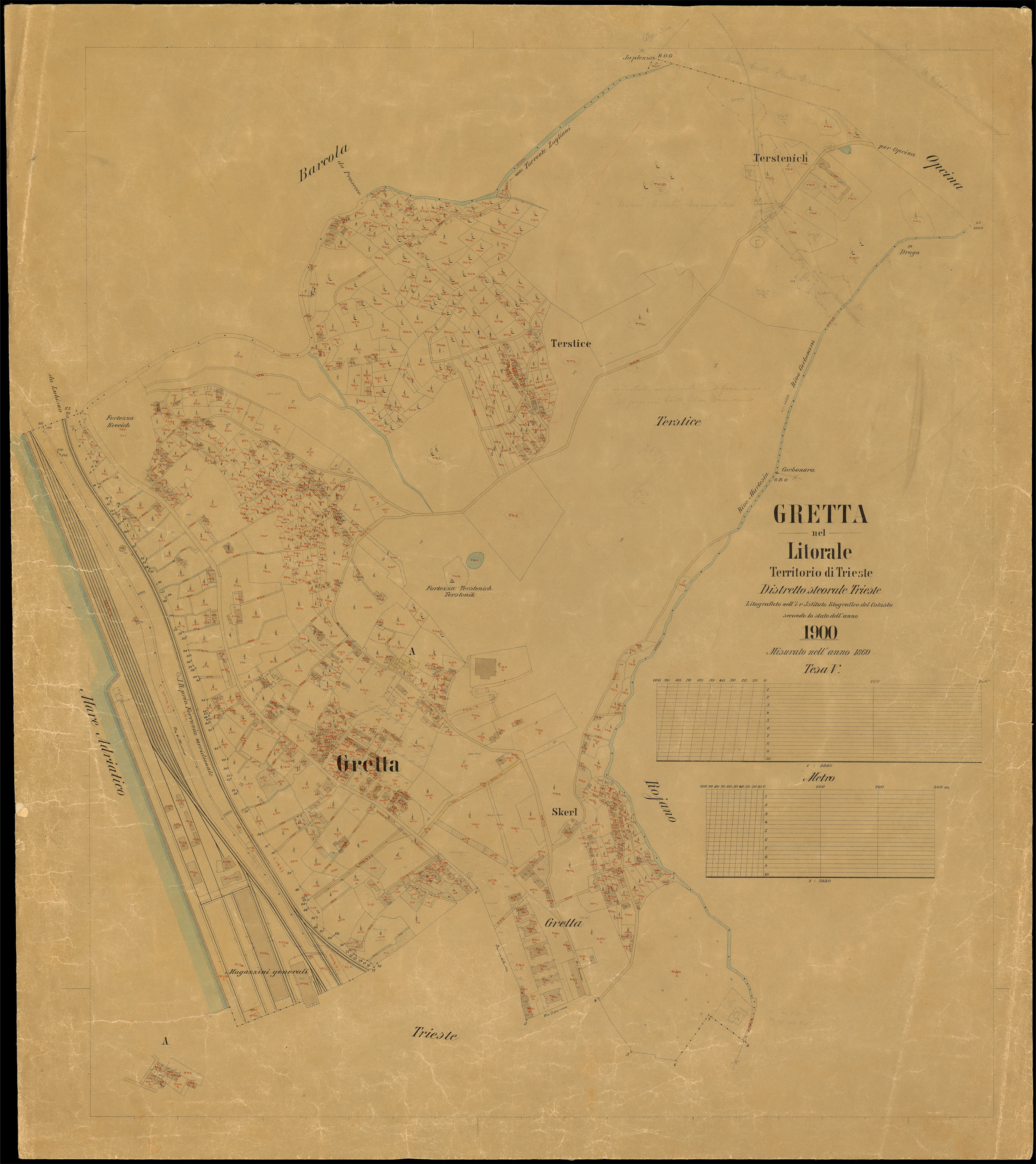 Gretta nel Litorale Territorio di Trieste : distretto steorale di Trieste : litografato nell'i.r. Istituto litografico del Catasto secondo lo stato dell'anno 1900 misurato nell'anno 1860