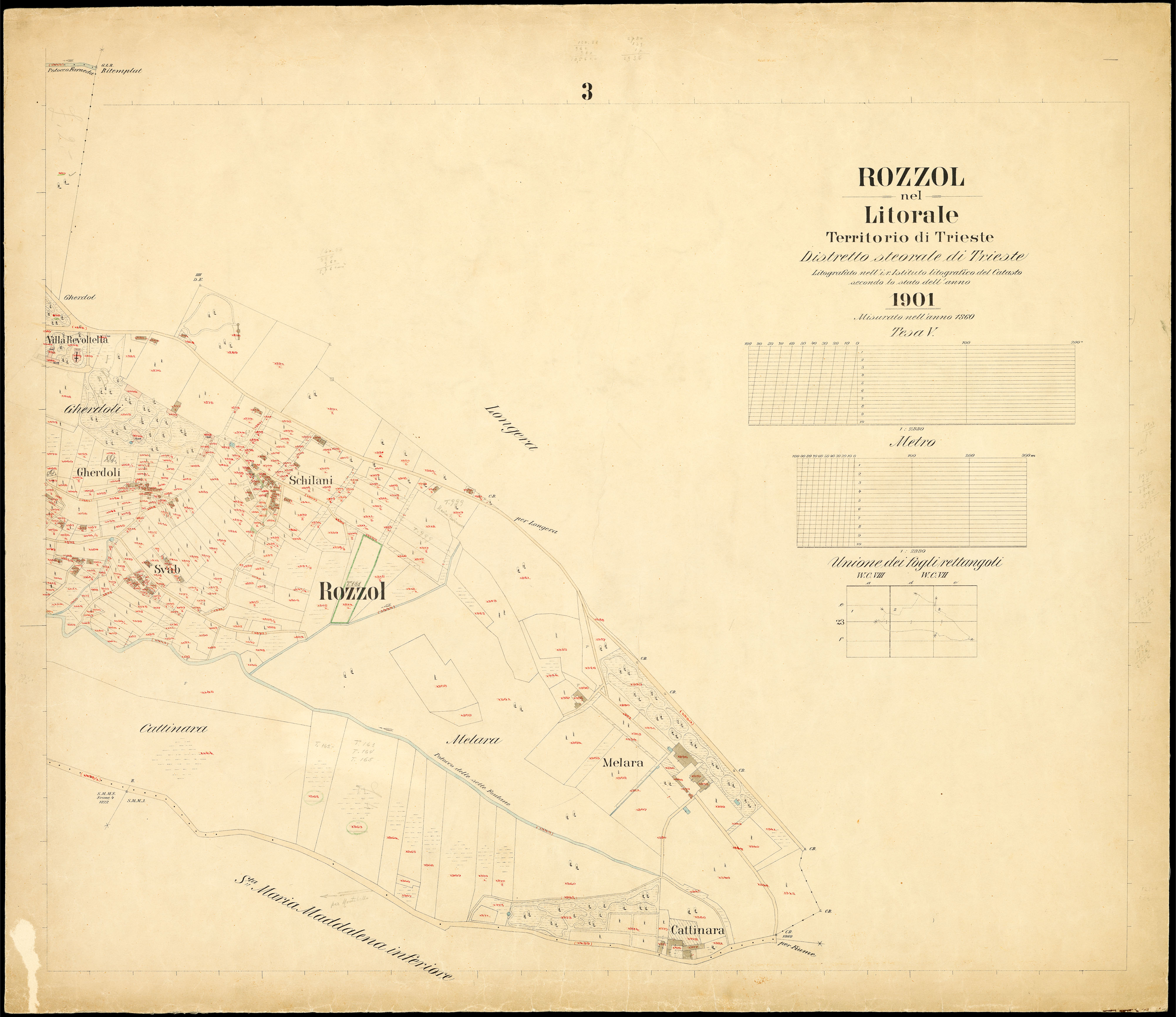 HomeRozzol nel Litorale Territorio di Trieste : distretto steorale di Trieste : litografato nell'i.r. Istituto litografico del Catasto secondo lo stato dell'anno 1901, misurato nell'anno 1860