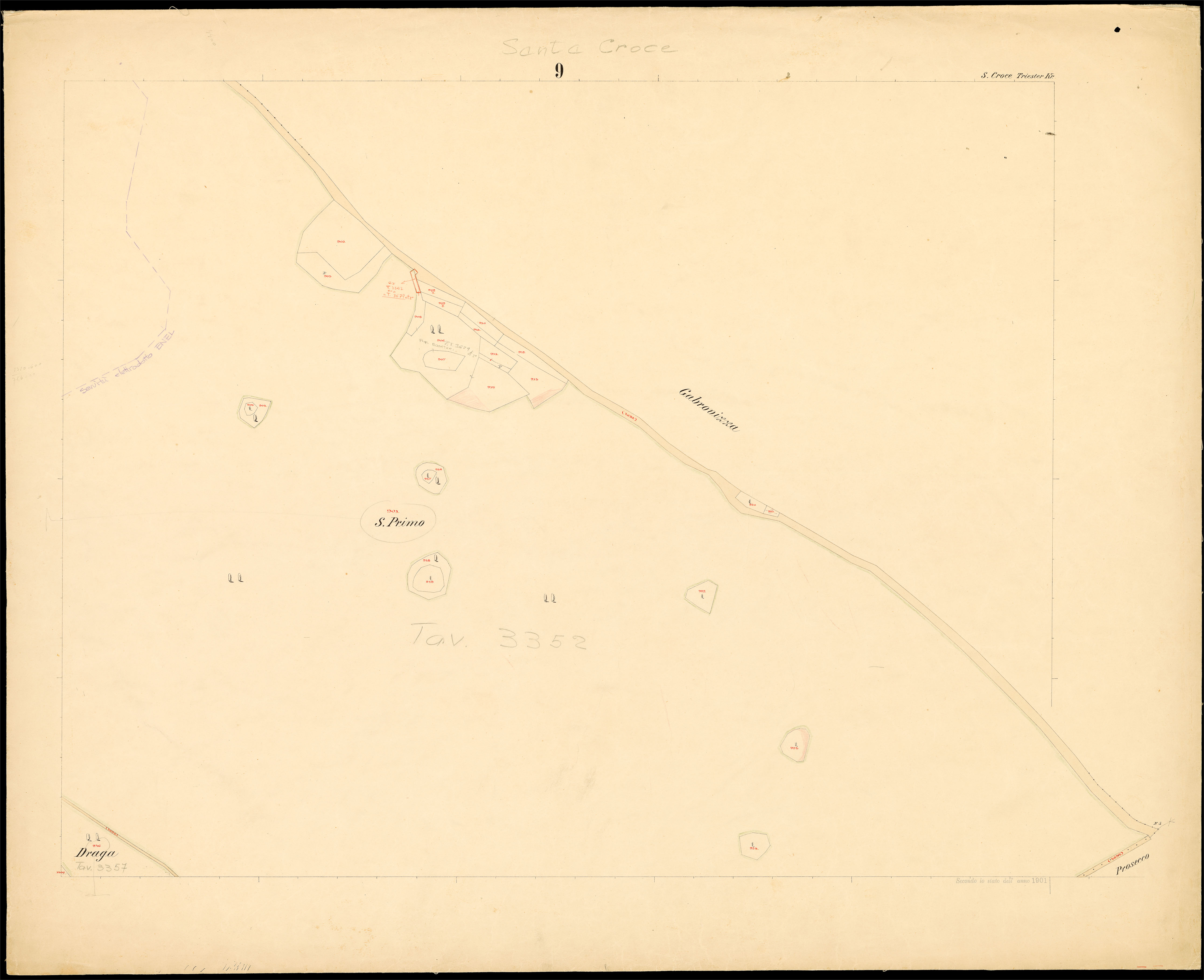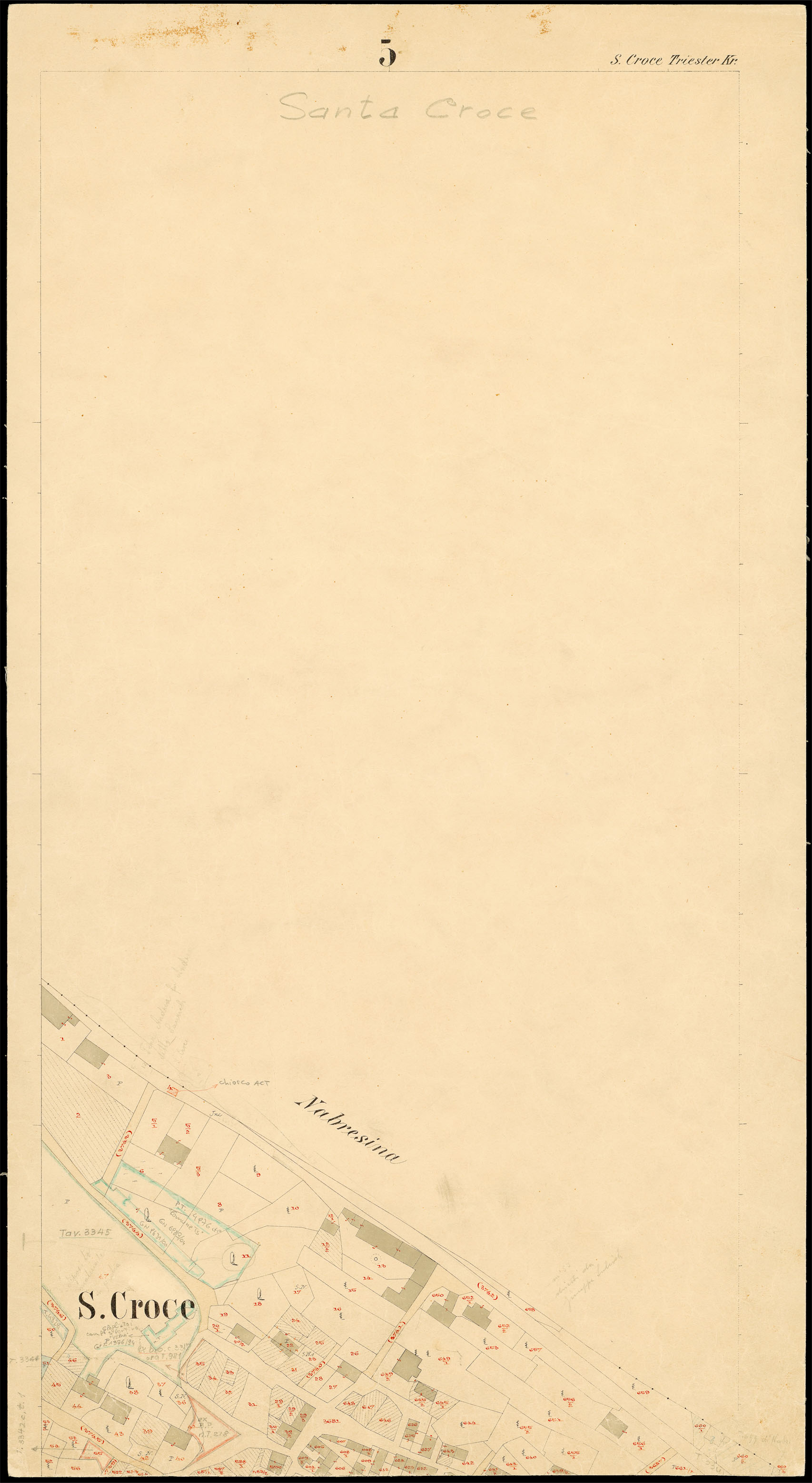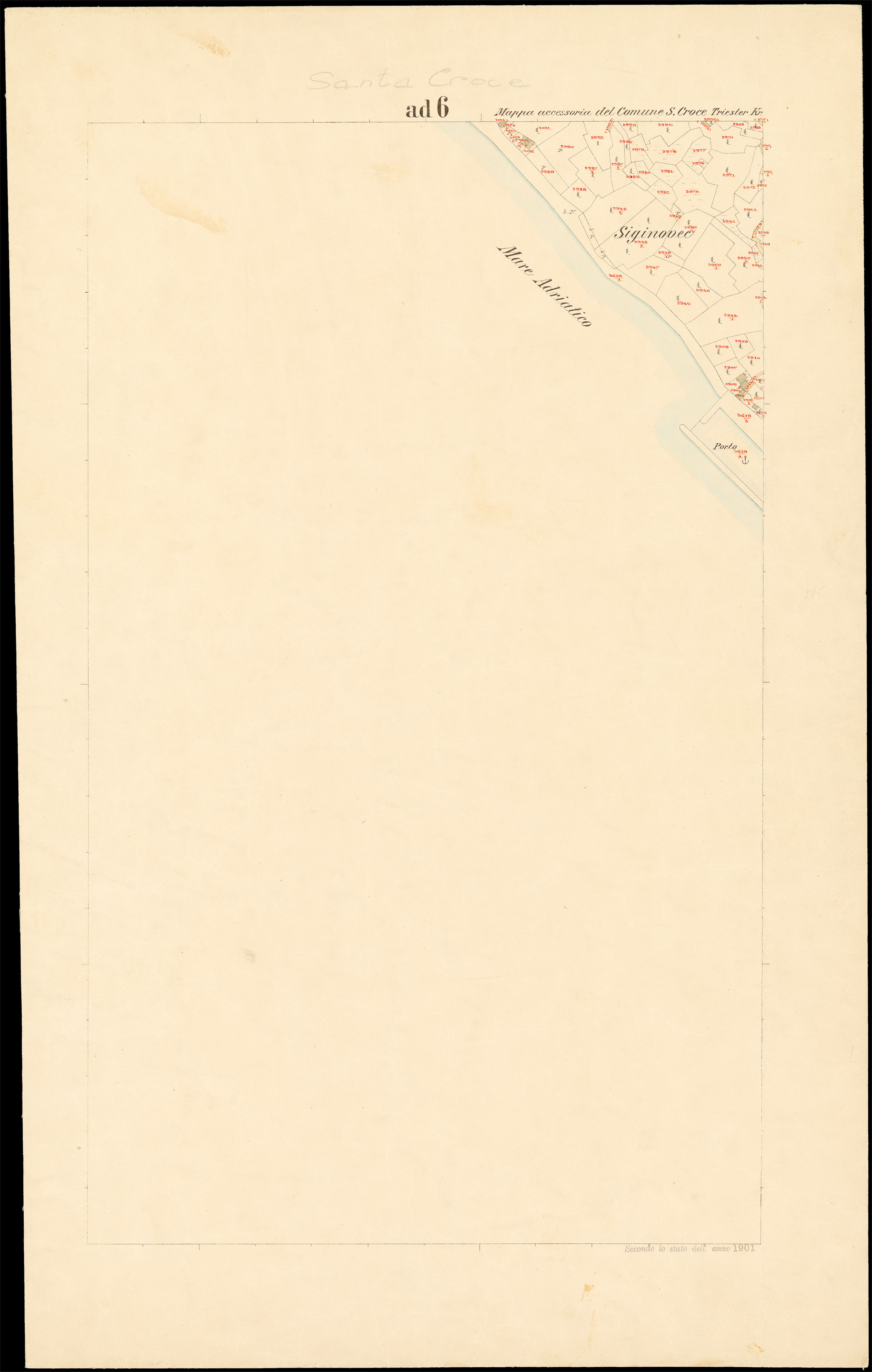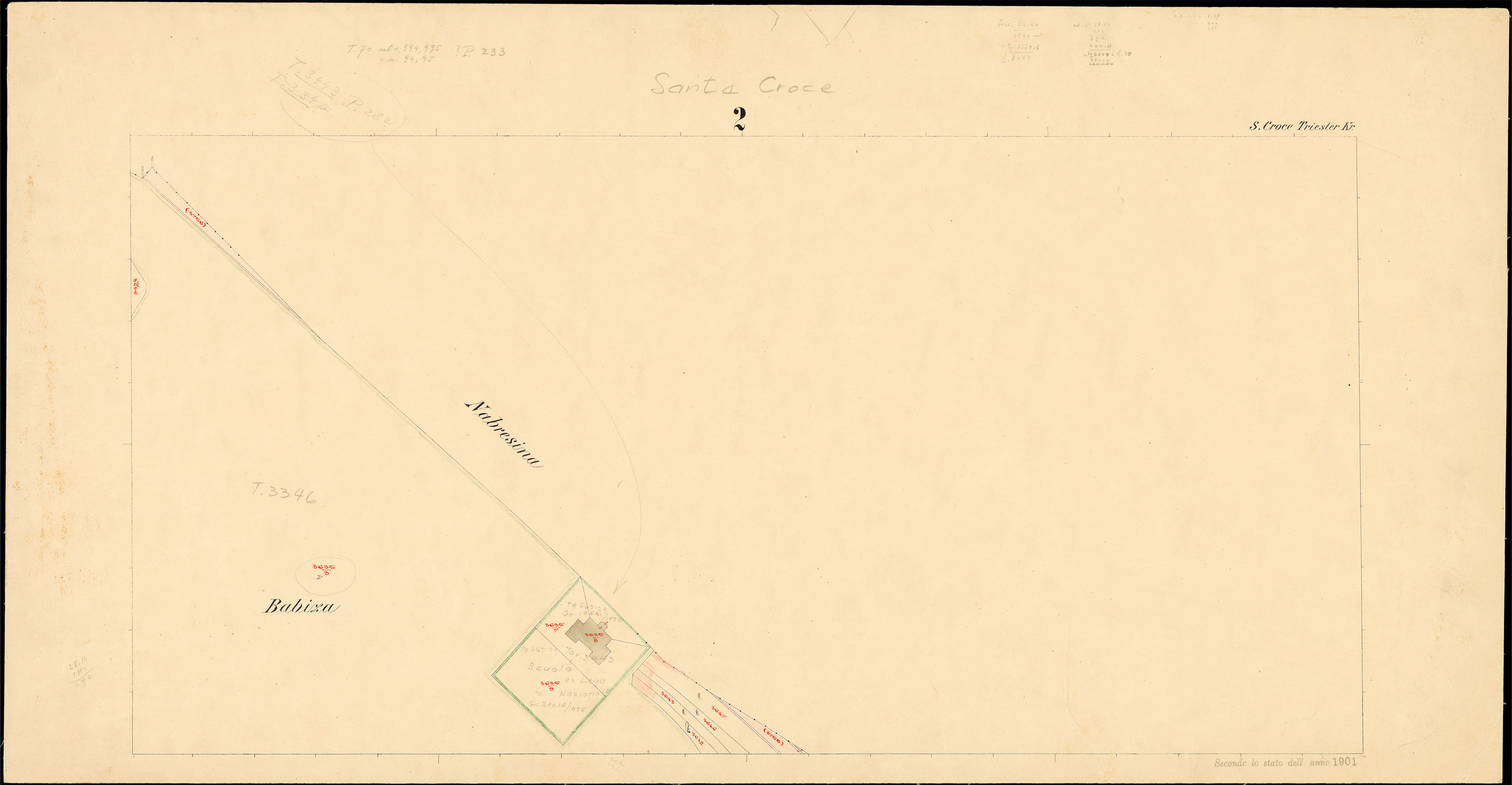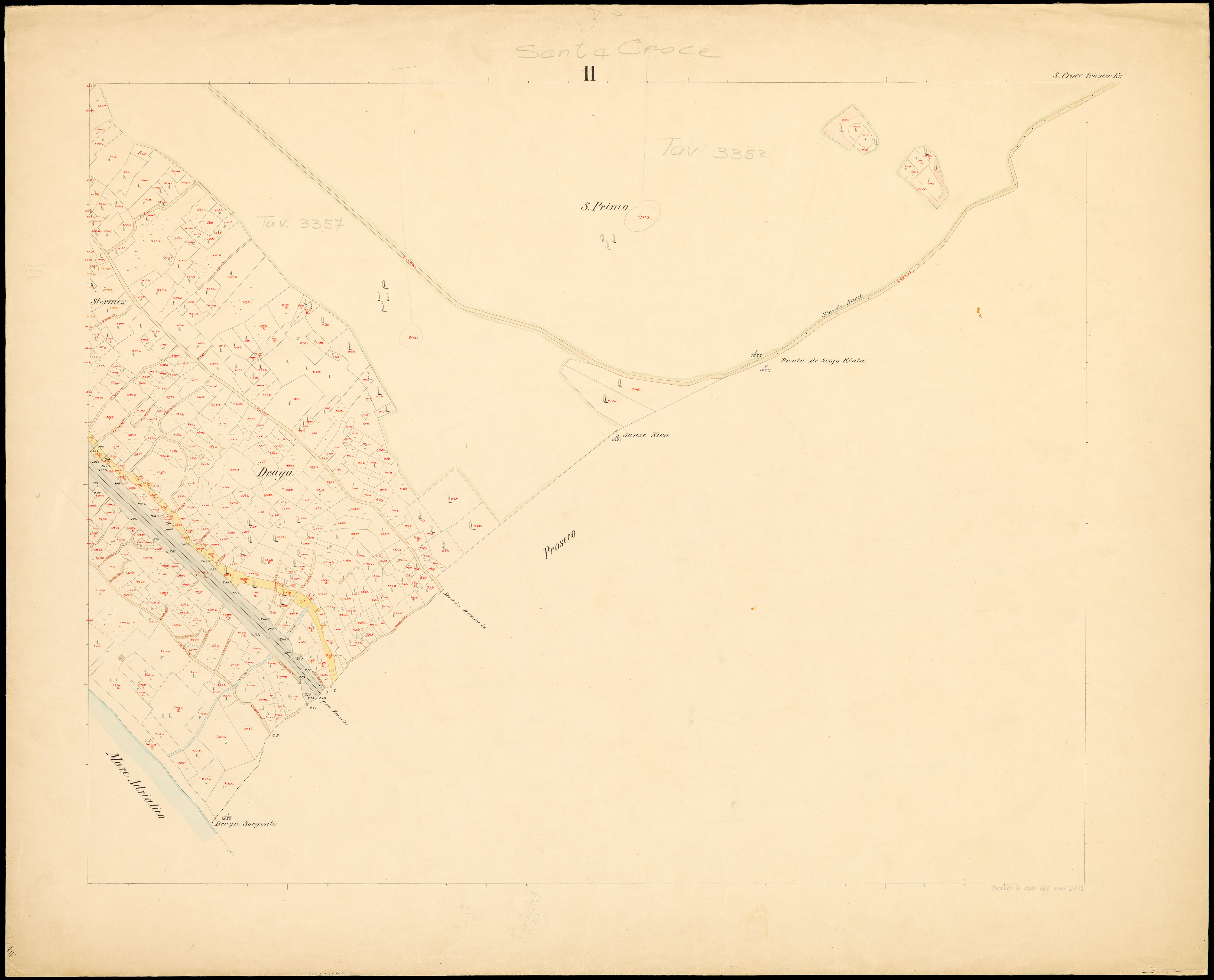 Santa Croce nel Litorale Territorio di Trieste : distretto steorale di Trieste : litografato nell'i.r. Istituto litografico del Catasto secondo lo stato dell'anno 1901, misurato nell'anno