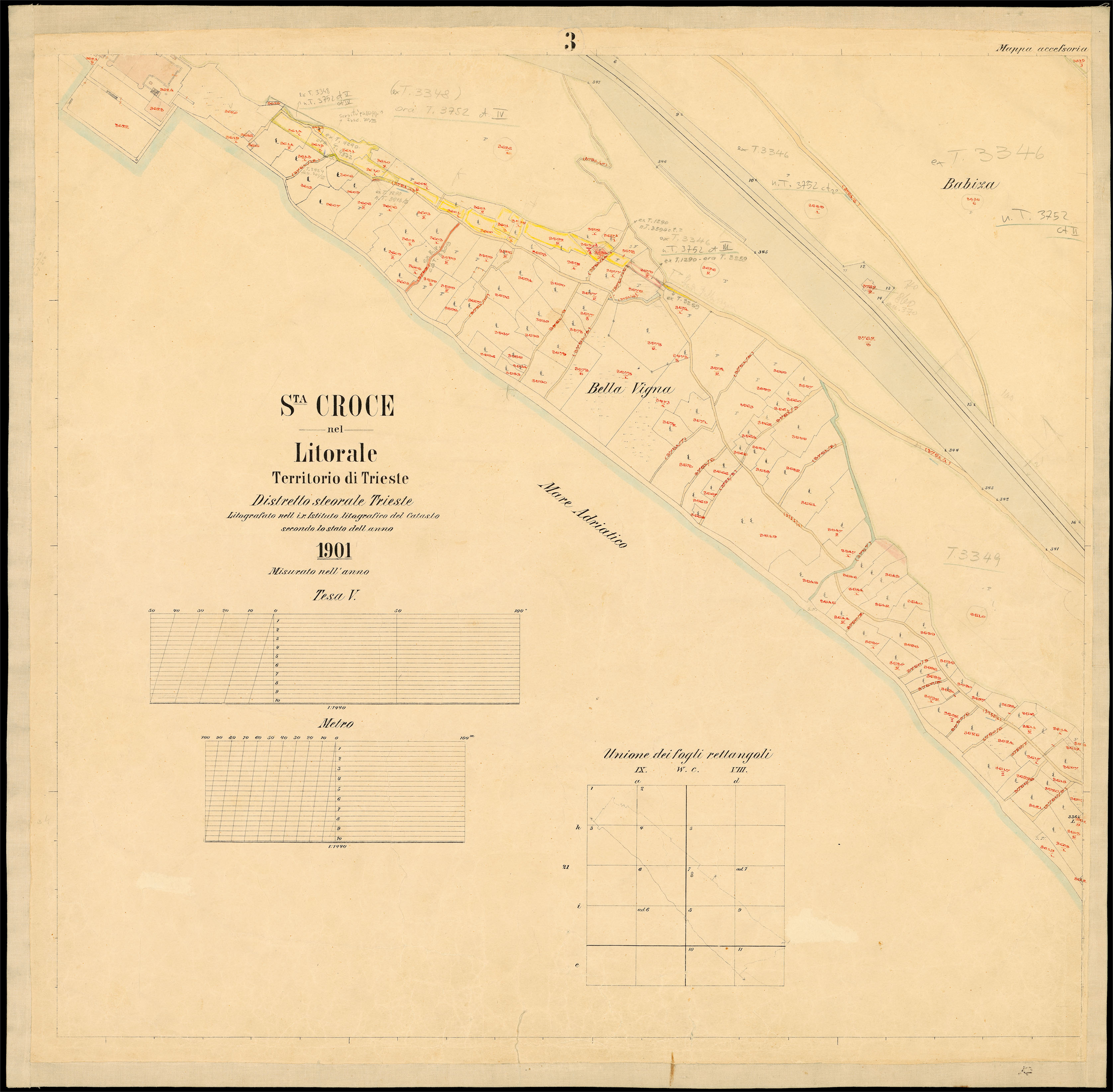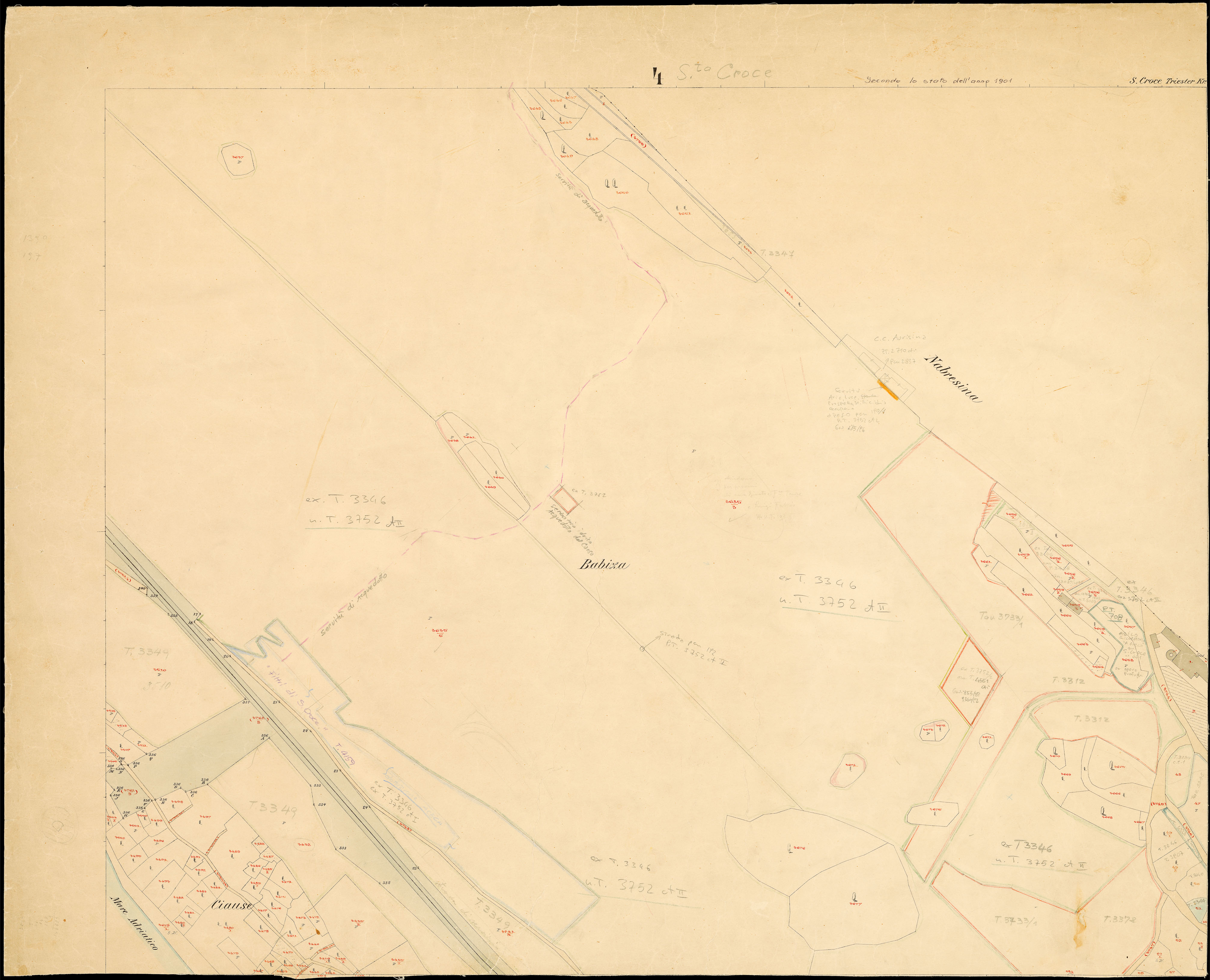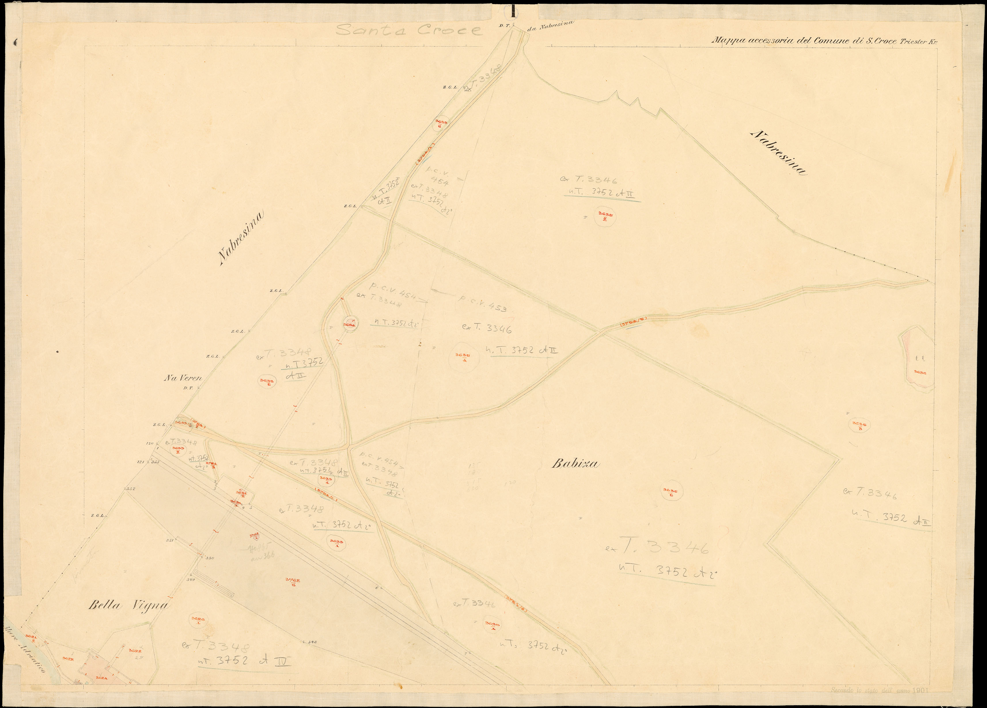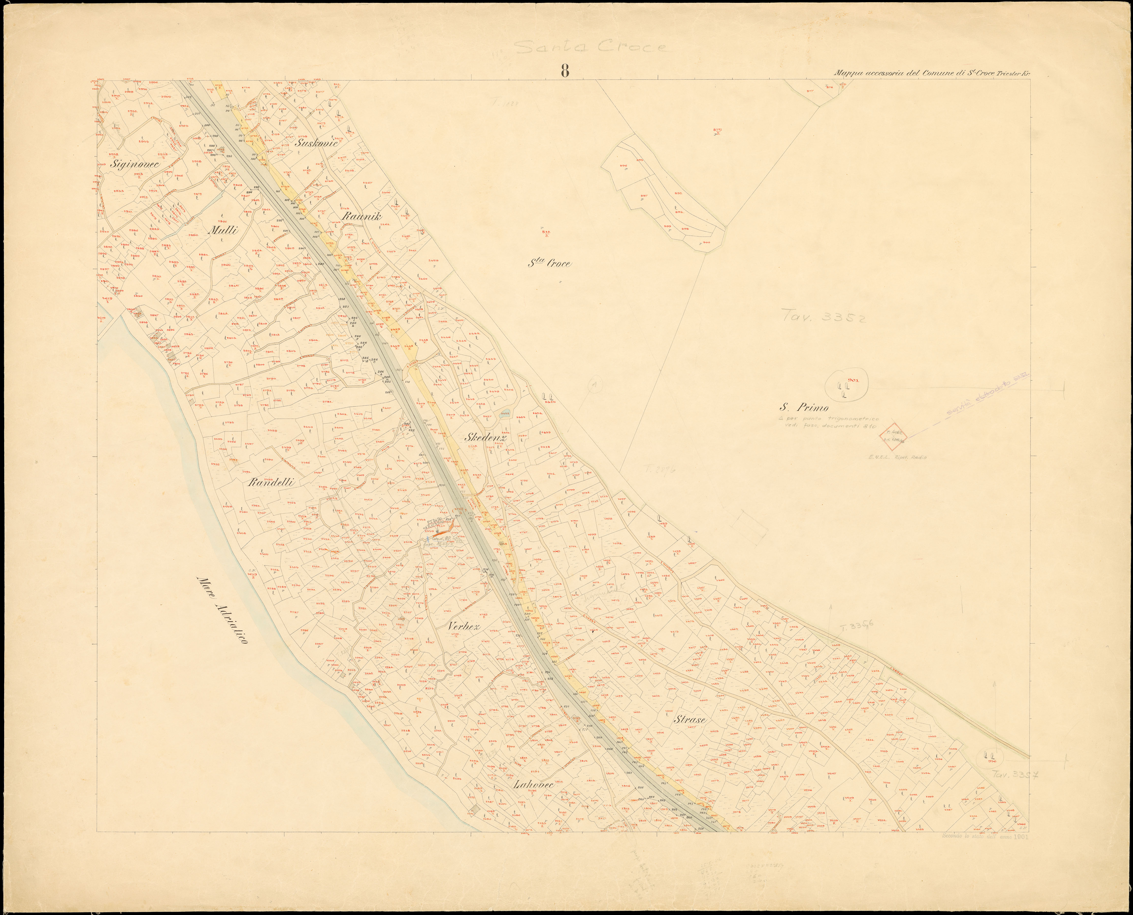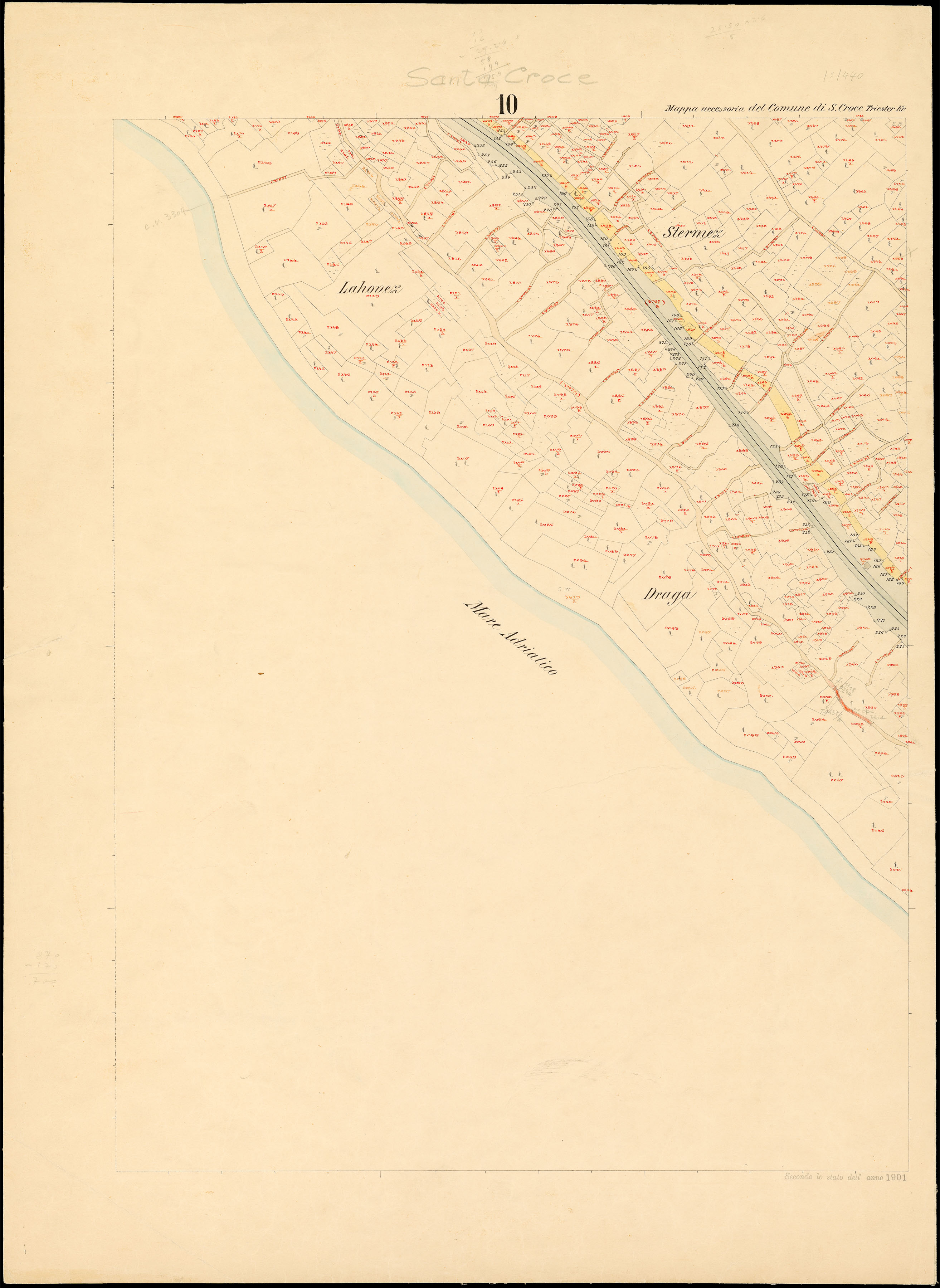 Santa Croce nel Litorale Territorio di Trieste : distretto steorale di Trieste : litografato nell'i.r. Istituto litografico del Catasto secondo lo stato dell'anno 1901, misurato nell'anno